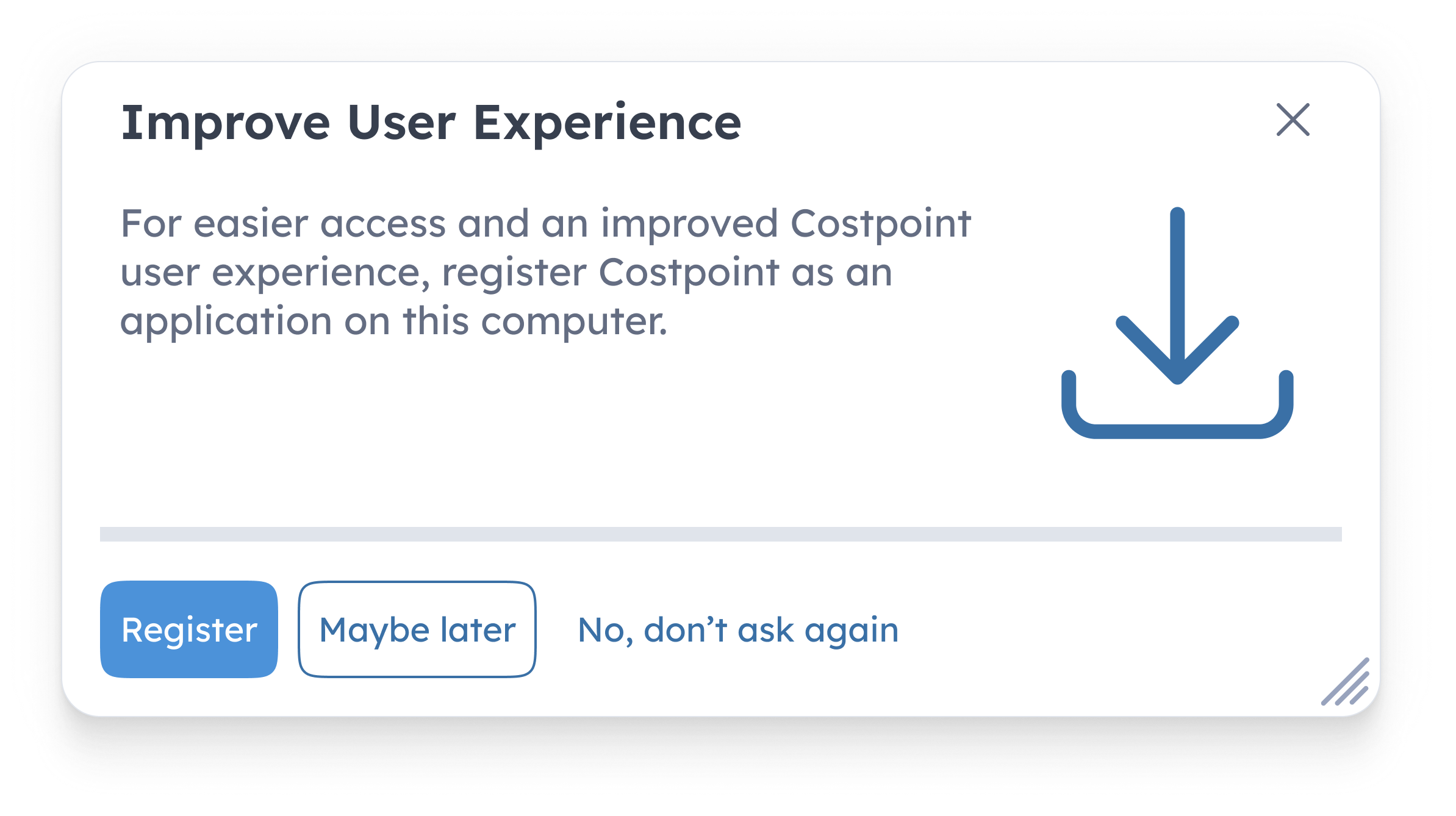 See Installing Costpoint as a Progressive Web App in the Costpoint Online Help for more information.